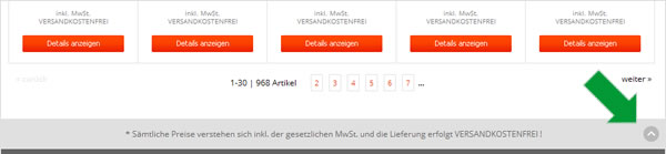 Wenn eine Shopseiten sehr lang wird, dann ist es gerade auf mobilen Endgeräten sehr mühsam wieder zum Beginn der Seite zu gelangen. Mit dieser einfachen jQuery-Erweiterung „ScrollToTop“ wird nach dem Scrollen automatisch ein Button eingeblendet, über den der User wieder zum Seitenanfang kommt.