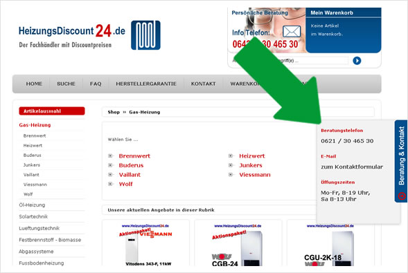 Durch den permanent sichtbaren Button haben Shopbetreiber schnell und einfach die Möglich an bestimmte Informationen prominent zu platzieren, ohne daß Elemente des Shopdesigns gestört oder unterbrochen. Dies eignet sich besonders für Kontaktinformationen, Aktionen und Newsletteranmeldung. Die Implementierung ist schnell und einfach durchzuführen, der Inhalt des „ausfahrenden“ Fensters kann beliebig gestaltet werden.