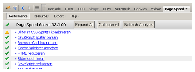 nach ein paar Sekunden sind alle Thumbnails im aktuellen Verzeichnis komprimiert und die Page Speed Werte deutlich besser als vorher.