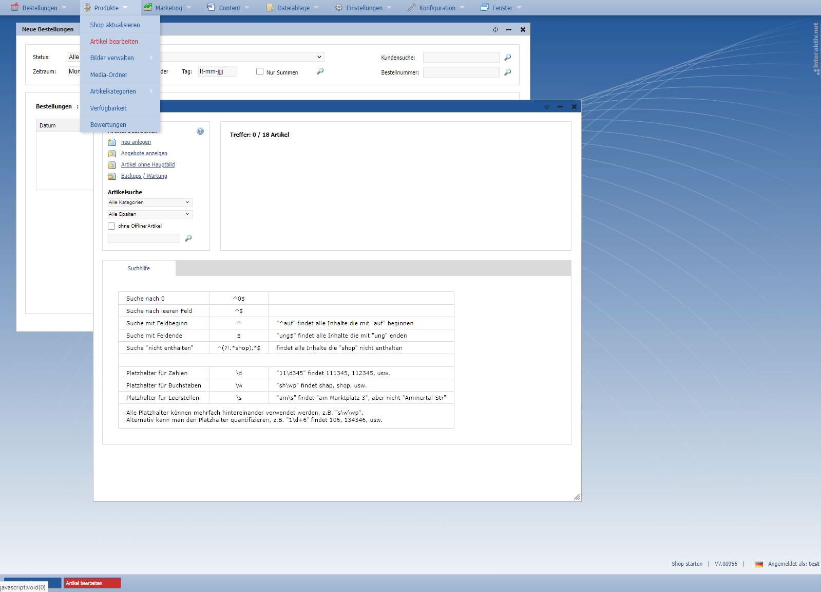 - Öffnen Sie im Menü den Punkt "Produkte -> Artikel" bearbeiten.
