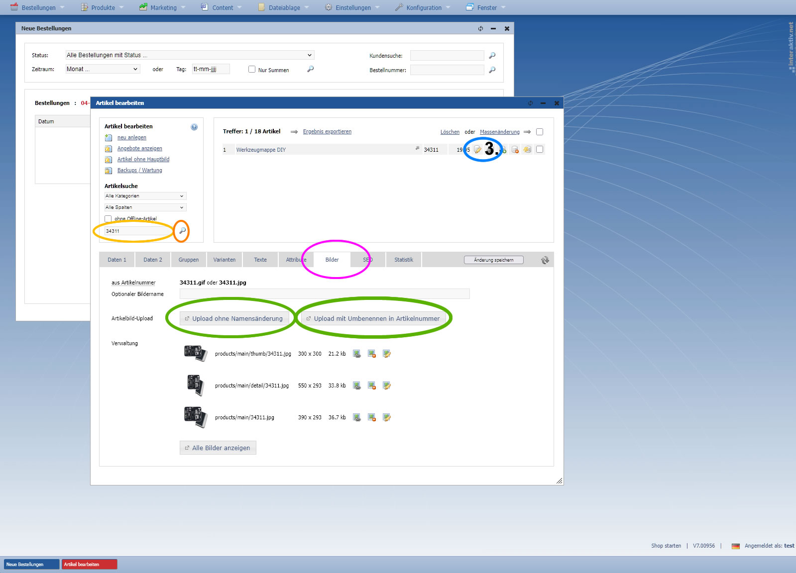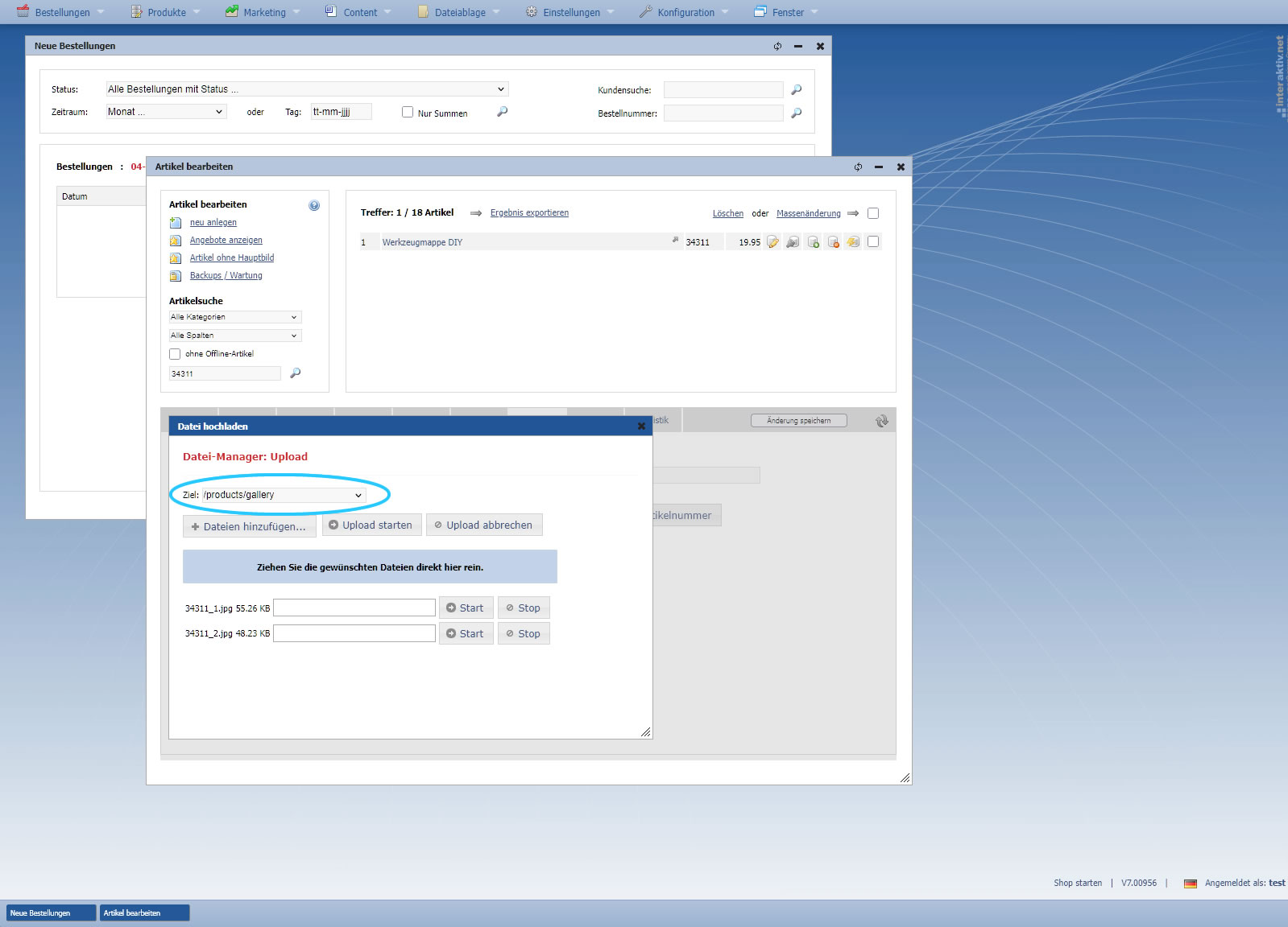 A.) Upload über die Artikelverwaltung
