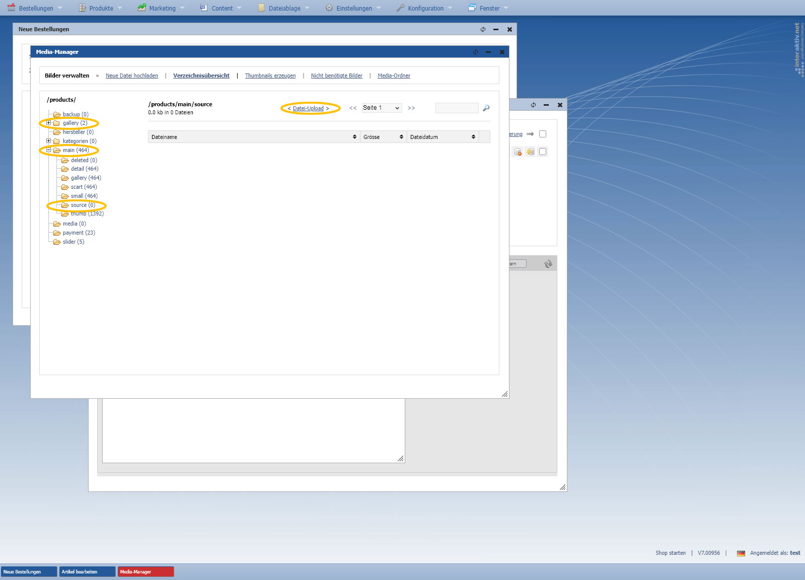 - Wechseln Sie in das Verzeichnis "products/main/" oder "products/main/source/", um die vorbereiteten Hauptbilder hochzuladen.